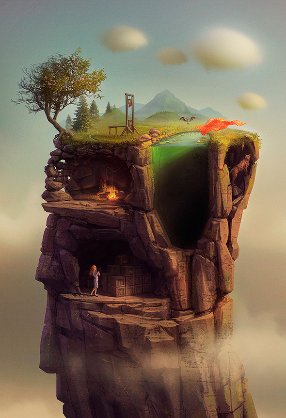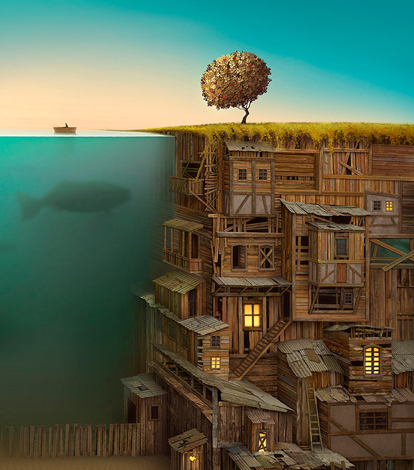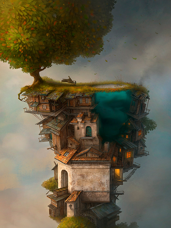 Illustratore e digital artist, Gediminas Pranckevicius è un creatore di mondi impossibili in cui ci si perde in ogni dettaglio per poi venire infine avvolti in una visione d’insieme poetica, complici un’attenzione particolare all’utilizzo della luce e lo studio dei pattern. Ambienti tra il fantastico e l’onirico, rappresentazioni dell’inconscio in stile cartoon che, se da una parte si costruiscono tramite elementi della vita quotidiana reali, dall’altra risultano definire una composizione altamente suggestiva. Isole di immaginazione, fette di una realtà ispezionata, quasi fosse un’autopsia, per rivelarne i segreti. Niente colpisce di più della morbida profondità dell’acqua, che suggerisce quella sensazione di indefinito dell’atmosfera surreale a cui da vita l’artista lituano.