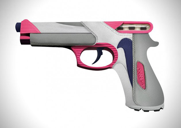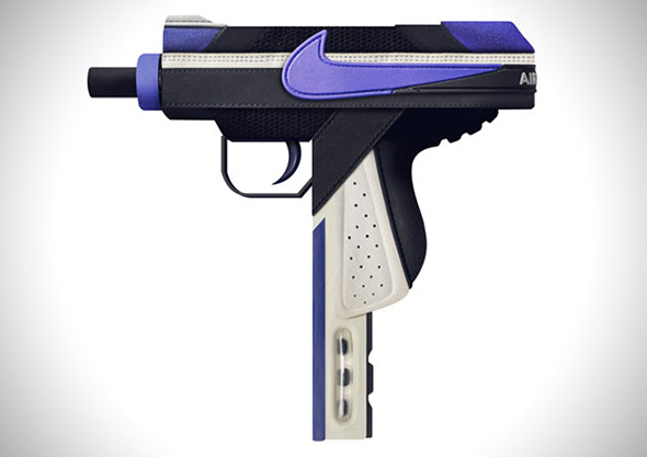 Phil Robson aka Fil Fury con le sneakers ci fa di tutto, dagli insetti alle armi. E così le celebri Nike Air Max 90 ed Air Max BW diventano pistole Beretta e mitra Uzi. Non chiediamoci il perchè.