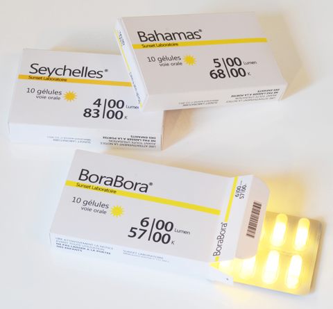 Freddo, colorito spento, tono muscolare flaccido, umore tendente al depresso. Che fare? Come nelle migliori pubblicità, la soluzione è ovviamente una pillola, ma in questo caso, molto speciale: una pillola di luce. Potrete scegliere tra la luminosità di Bora Bora, Seychelles, Bahamas… e attenzione a non superare le dosi consigliate!