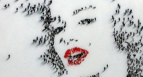 Una serie di portraits classici: Marilyn Monroe, JFK, Audrey Hepburn nella famosa scena di "Colazione da Tiffany", ma realizzati con uno strabiliante inedito mezzo: radunare le persone fino a comporne le effigi. Un progetto davvero sorprendente, dell'artista...