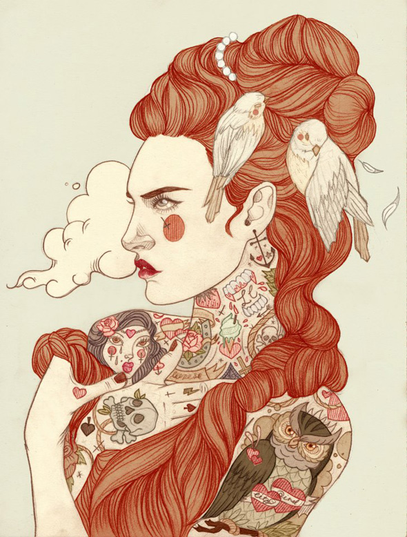 Liz Clements è una illustratrice freelance che vive e lavora a Londra. Le sue illustrazioni rappresentano spesso figure femminili eleganti e stilizzate coperte di tatuaggi e ornate con accessori stravaganti. É da poco online il suo nuovissimo sito web, take a look.