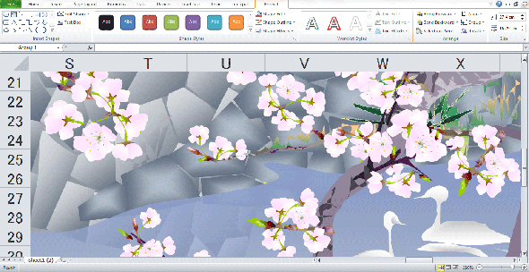 Tatsuo Horiuchi is a 73 years old Japanese painter. Although always having a big interest in visual arts, he only started pursuing his artistic flair once he retired, 13 years ago. Drawing a clear inspiration from his compatriot, painter Hiroshige Utagawa, Horiuchi “paints” classic naturalistic subjects from the Japanese ancient pictorial tradition – such as branches, flowers, nightingales – by using a computer. This would be perfectly normal, if he wasn’t using popular Excel spreadsheet, instead of dedicated softwares like Photoshop. The procedure is long and requires a lot of perseverance, but it’s definitely worth it. To get a sense about how Horiuchi creates his unique artworks, you can download the .xls files of Cherry Blossom at Jogo Castle (2006) and Kegon Falls (2007).