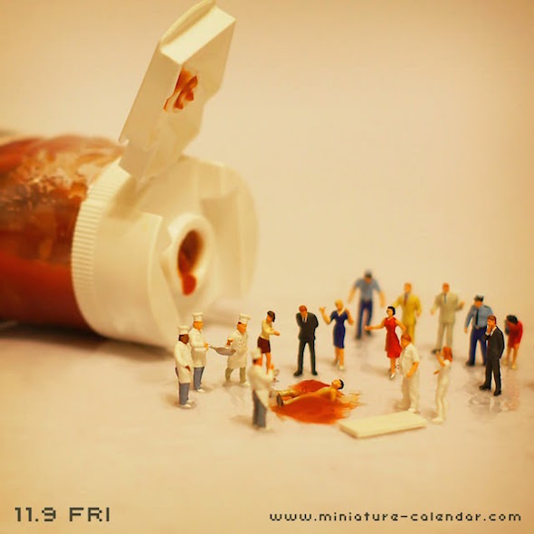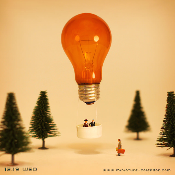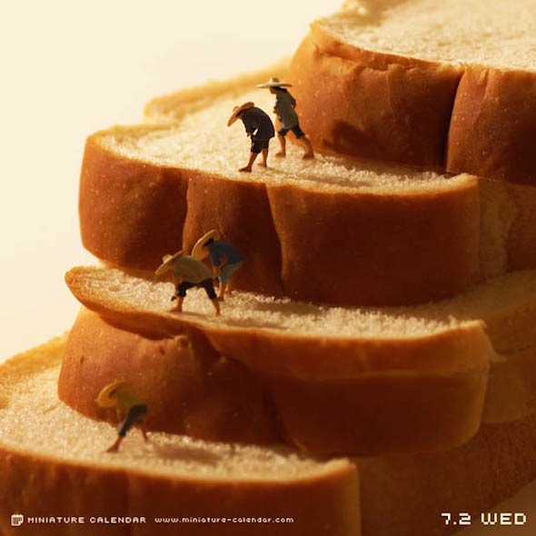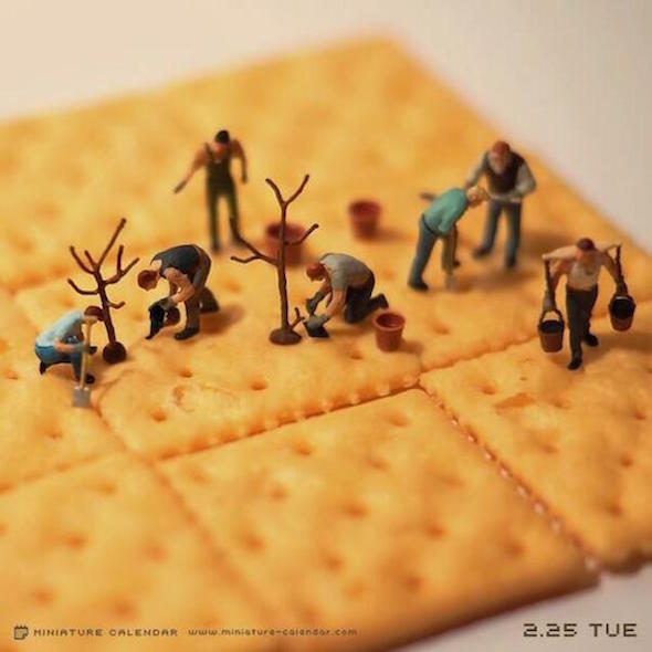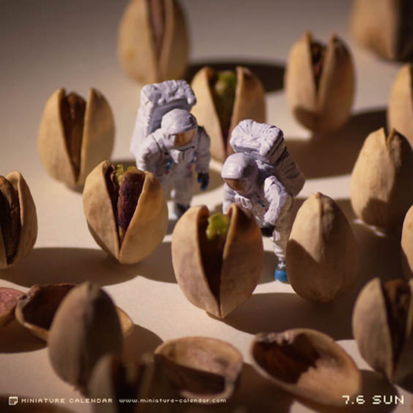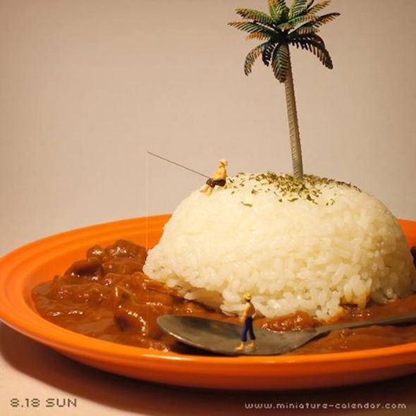 “Tutti devono averci pensato almeno una volta. I broccoli e il prezzemolo possono sembrare foreste, oppure tre foglie che galleggiano sulla superficie dell’acqua, barche”. Quello che Tatsuya Tanaka riesce a fare con le proprie mini-sculture supera però l’immaginazione di ognuno di noi, e la sua creatività sembra non avere limiti. Neppure in termini di velocità, al punto di raccogliere le sue quotidiane invenzioni in un calendario, costantemente, instancabilmente up-to-date.