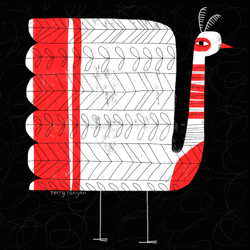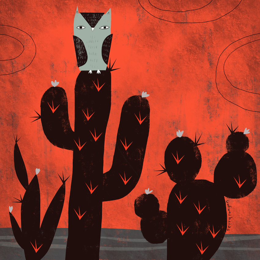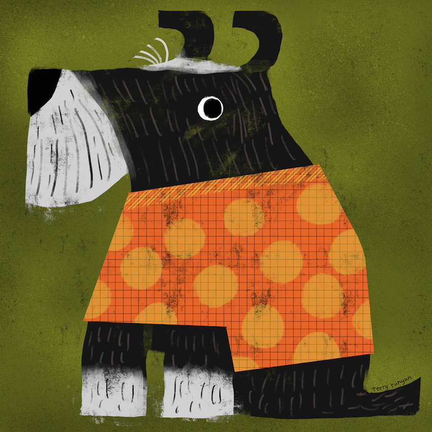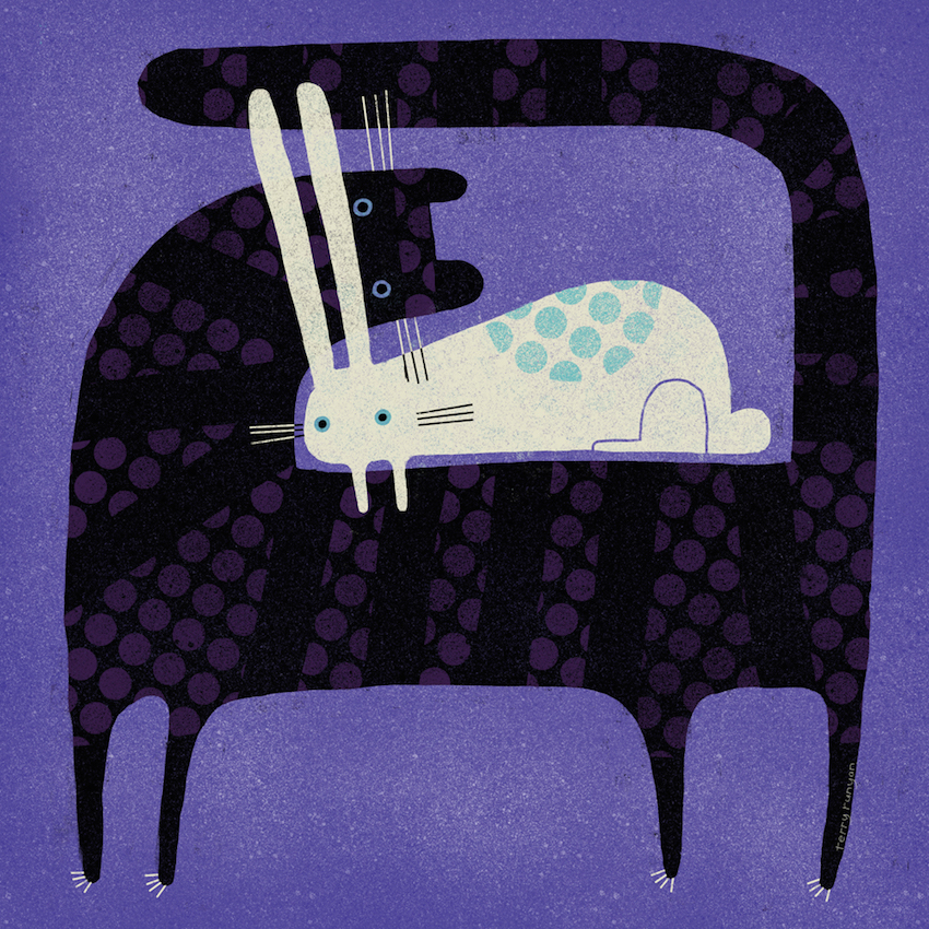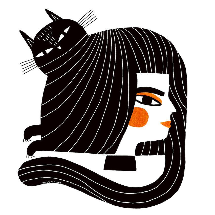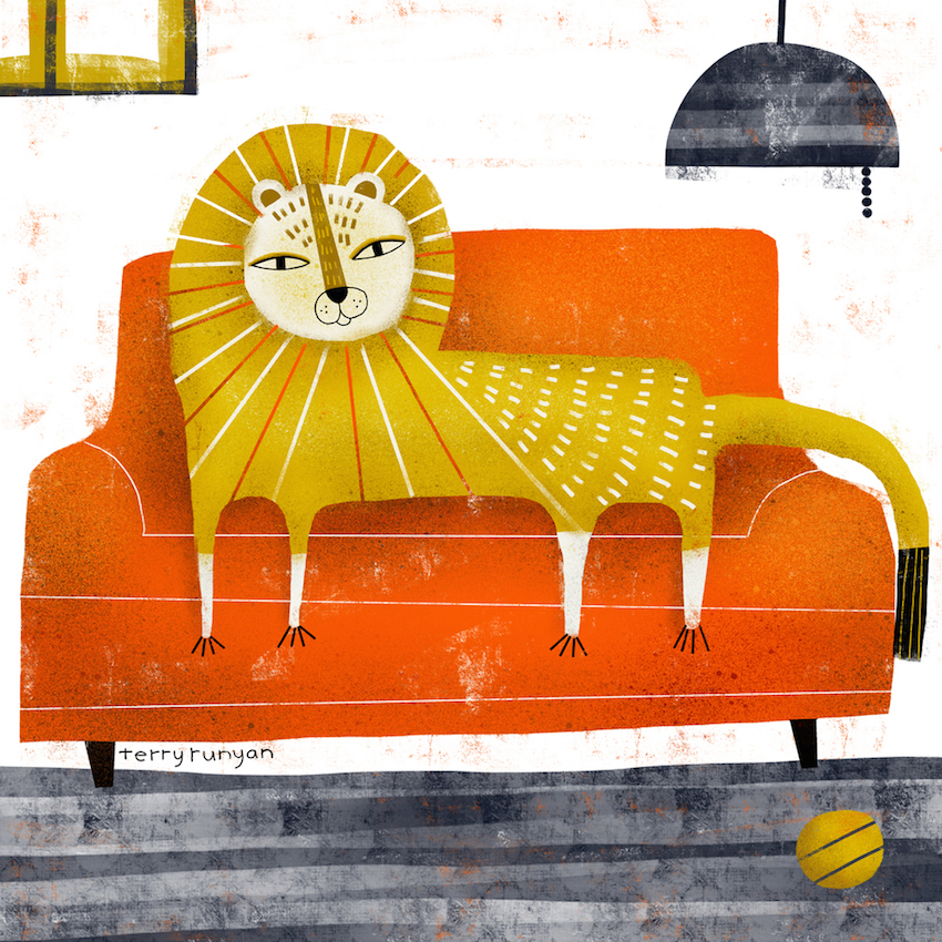 É uno zoo di animali da compagnia il portfolio di Terry Runyan, illustratrice di Kansas City che dichiara di prendere l’ispirazione dai due gatti che, di fatto, governano il suo studio. A un tempo buffo e magnetico, il suo stile scompone le membra naturali per riassemblarle in forme geometriche e colorati pattern, richiamando contemporaneamente alla memoria l’arte antica delle anfore decorate e le avanguardie del Novecento.