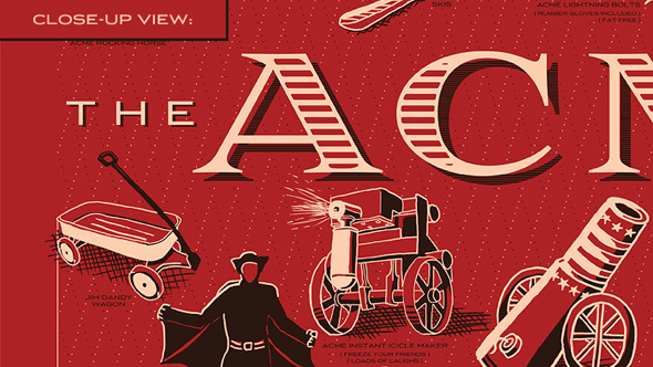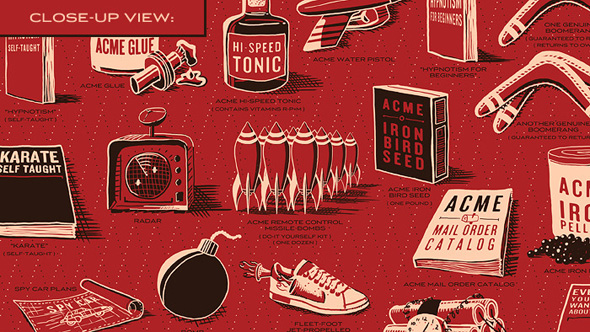Dopo aver rivisto “Chi ha incastrato Roger Rabbit” ho qualche dubbio che i prodotti ACME siano solo 126. Di sicuro, innumerevoli sono i modi in cui Wile E. Coyote ha cercato di papparsi Road Runner. Bob Loukotka si è guardato tutte le loro avventure (dal 1949 al 1994) e raccolto i vari marchingegni in un poster, probabilmente in vendita da Gennaio 2013.