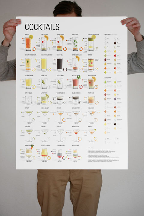 Tutti i cocktail più famosi raccolti in questo poster dal designer Konstantin Datz, in vendita sul suo sito per 25 dollari. Ma non finisce qui, c’è anche la comoda (ed economica) applicazione per imparare a preparare tutti i drink più cool. Continua dentro al post.