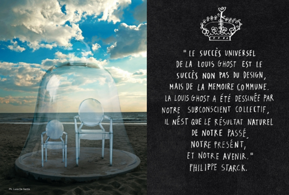La sedia Louis Ghost, disegnata da Philippe Starck per Kartell, compie 10 anni. Questo oggetto eclettico non è solo la sedia più celebre della storia del design contemporaneo ma è anche la più venduta, utilizzata, fotografata, copiata. L’azienda ne celebra l’anniversario con una campagna virale ricca di contenuti e curiosità, affiancata ad un tour che toccherà le capitali di tutto il mondo e ad un contest rivolto agli utenti di facebook.“Il successo universale della sedia Louis Ghost non viene dalla progettazione, ma dalla memoria comune. La Louis Ghost è stata elaborata dal nostro subconscio collettivo, è soltanto il risultato naturale del nostro passato, del nostro presente e del nostro futuro”.