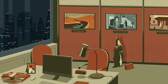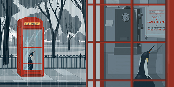 Il viaggio del pinguino, ovvero un percorso immaginario che celebra 80 anni di storia della Penguin Books, raccontato da Emiliano Ponzi in oltre 40 magnifiche tavole. Il libro verrà presentato in anteprima domani presso la Society of Illustrators di New York alla presenza di Emiliano e di Paul Buckley, art director della casa editrice.