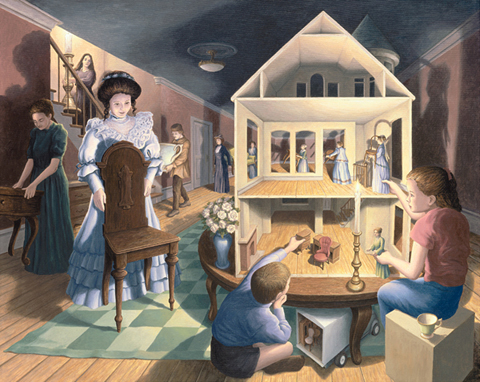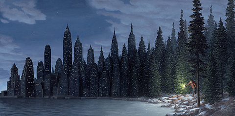 I supporti di un ponte ferroviario che si trasformano in acrobati in equilibrio, nubi che diventano velieri che navigano nel cielo, bambini che saltano sui lettini e decollano in volo su di un paesaggio a patchwork. Questo e molto altro è Rob Gonsalves, illustratore canadese che da sempre ricrea quel momento magico in cui la realtà si confonde con quel che ne resta del sogno. In tutti i suoi quadri egli esplora visivamente le possibilità dell’immaginazione incoraggiando a guardare verso un luogo onirico dove la normalità appare soltanto per mutare e diventare qualcos’altro. Dentro il post trovate una selezione dei suoi lavori migliori.