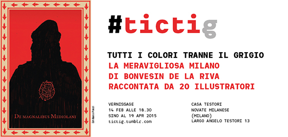 La Milano del 1200 rivive nella Milano di oggi attraverso le parole Bonnvesin de la Riva e le opere di 20 illustratori italiani. Si apre così la stagione espositiva di Casa Testori a Novate Milanese, che dal 15 febbraio al 19 aprile ospita la mostra “#TICTIG: TUTTI I COLORI TRANNE IL GRIGIO. La meravigliosa Milano di Bonvesin de la Riva raccontata da 20 illustratori”. Venti stanze, ognuna delle quali affidata ad un artista, per celebrare la forza e il dinamismo di una città che sul finire del XIII secolo appariva più colorata e ridente che mai. I vari temi trattati dal Bonvesin, e i personaggi del volume, vengono reinterpretati con il linguaggio contemporaneo dell’illustrazione, in un percorso pieno di sorprese che restituisce un’immagine della vita di Milano, riempiendo di stupore e stimolando mille curiosità nel lettore di oggi.