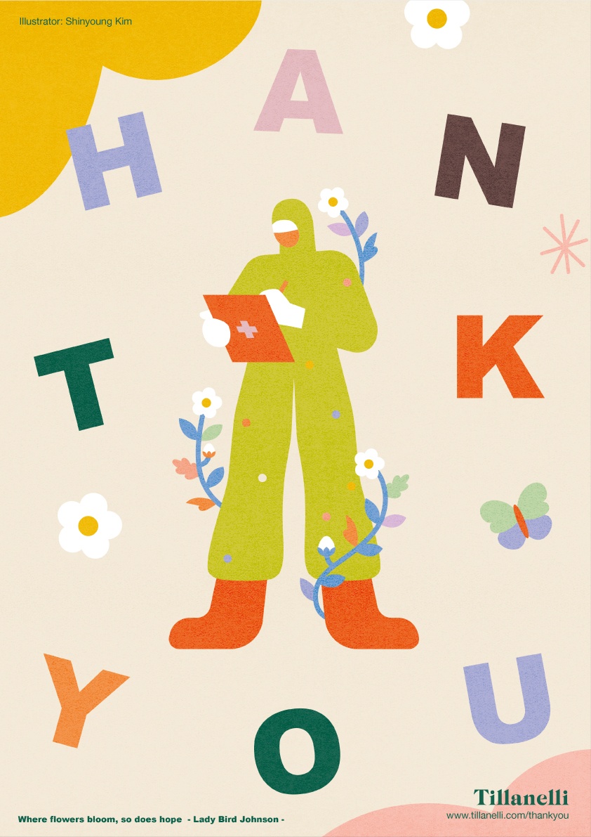 Il collettivo riunisce artiste da ogni parte del mondo con lo scopo di promuovere e supportare il talento e il know-how femminili. Qualche settimana fa, in concomitanza con l’inizio del lockdown, le illustratrici hanno deciso di realizzare alcuni poster per dire grazie a tutti coloro che lavorano in prima linea nel settore sanitario. I PDF sono stati poi resi disponibili in alta risoluzione (fino al formato A3) per chiunque voglia scaricarli e utilizzarli.