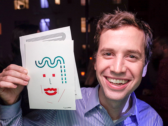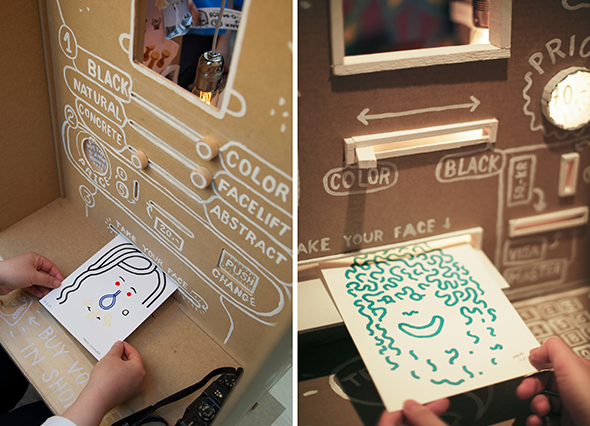 Ricordate le vecchie cabine automatiche per le fototessere? Immaginate che dietro un pannello di cartone ci sia Tobias disposto a farvi un ritratto a mano libera in 3 minuti. Tobias va oltre il realismo e, alla fine, usando pennelli di varia forma, crea un ritratto non convenzionale, un’interpretazione artistica, spesso astratta e psicologica, che ricorda le caricature futuriste.