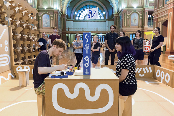 Face-o-mat, infatti, è un gioco, uno strumento di interazione sociale. Questo è un aspetto che interessa molto Tobias, il quale ha fatto evolvere il progetto di Face-o-mat verso un’altra direzione: Let’s Make Language , una ricerca che ha come presupposto il disimparare e il fuggire gli schemi linguistici convenzionali, cercando nuovi segni grafici e modi alternativi per esprimere le idee. Una sorta di esperanto visuale composto da nuove forme che tutti possono comprendere.