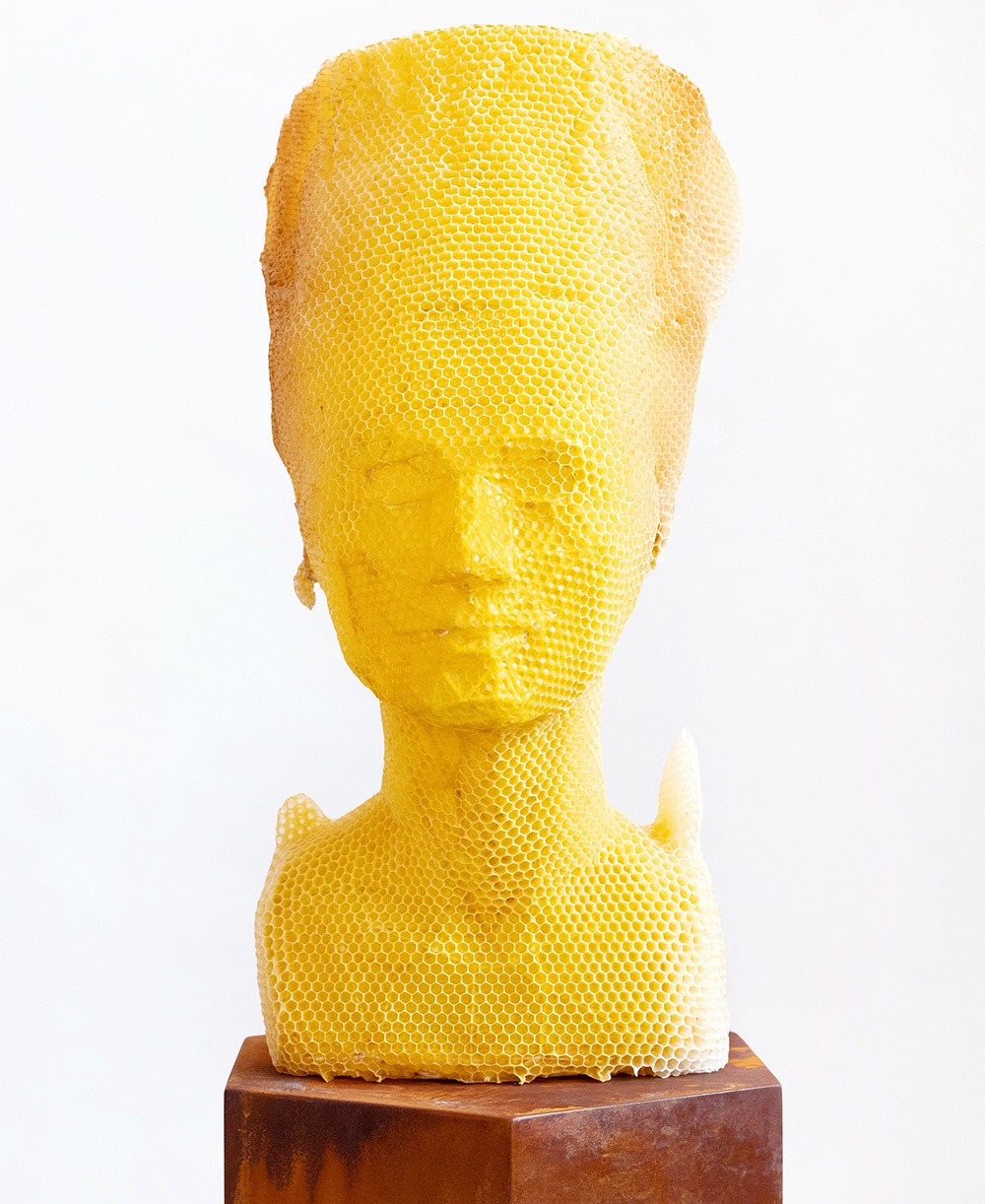 Questo grado di complessità ha permesso a Liberitiny di creare solo pochi pezzi fino ad oggi, per lo più ispirati a miti e oggetti del passato. L’ultimo, dedicato alla regina d’Egitto Nefertiti, ha richiesto due anni di lavoro e l’aiuto di 60.000 api per essere completato. Il modello del busto è stato ricavato dai ritratti conservati nel museo Staatliche di Berlino ed è stato successivamente inserito in una teca esposta al museo Kunsthal di Rotterdam in modo che i visitatori potessero osservare le api al lavoro. Una volta ultimato, è stato rifinito e nuovamente esposto nella sua forma finale.