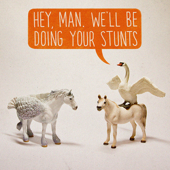 Lets put a stop to serious and silent toys and welcome playful fun ones. That’s what entered the mind of English designer Aled Lewis, who with his shots he freed the helpless toys long forgotten in some attic and transformed them into cabaret actors. “My Toy Stories project began in a toy store when I saw a figure of a unicorn rearing up as though he was showing off his magnificent horn. I arranged some of the other horse figures around him as if they were his dispassionate audience and an idea was hatched.” Enjoy!