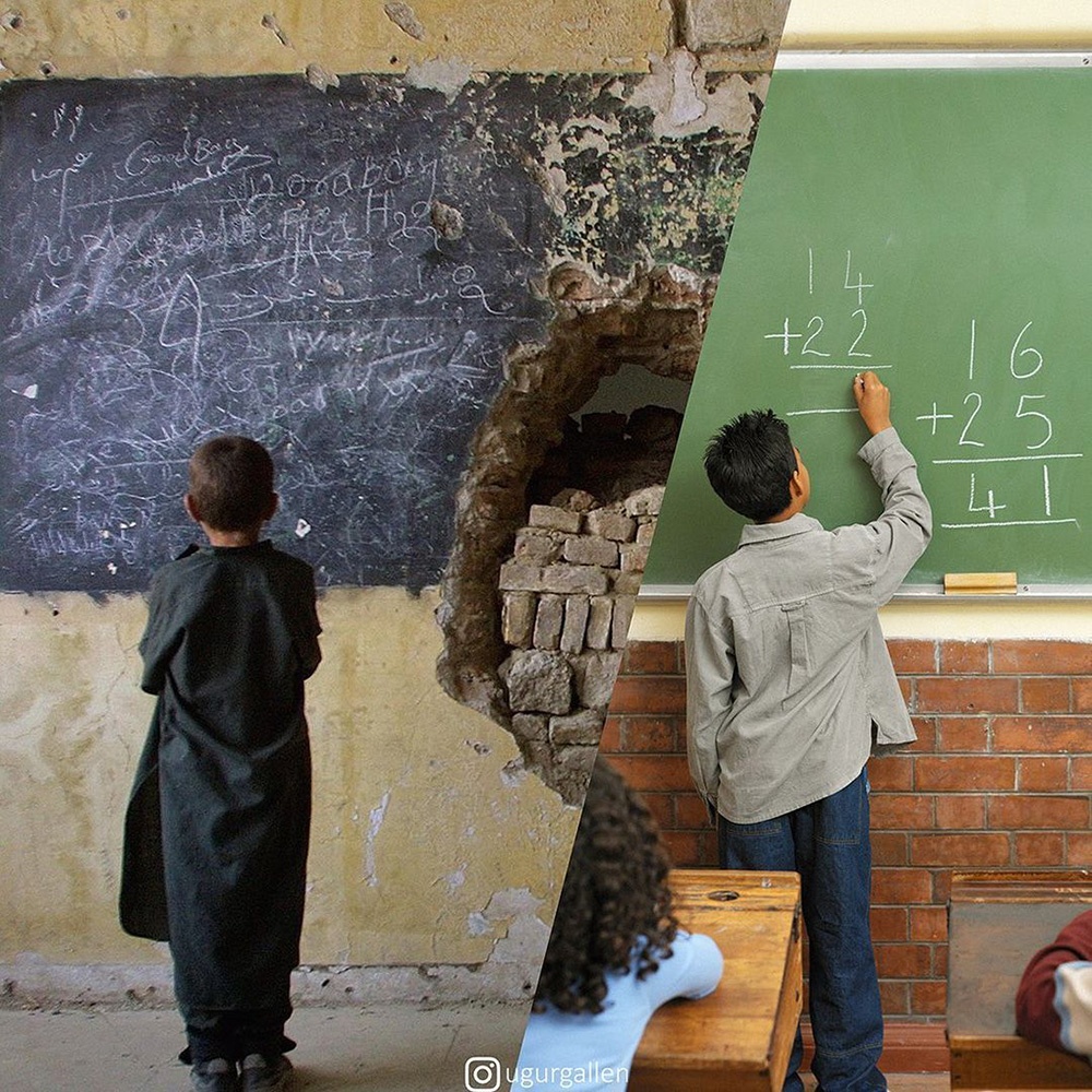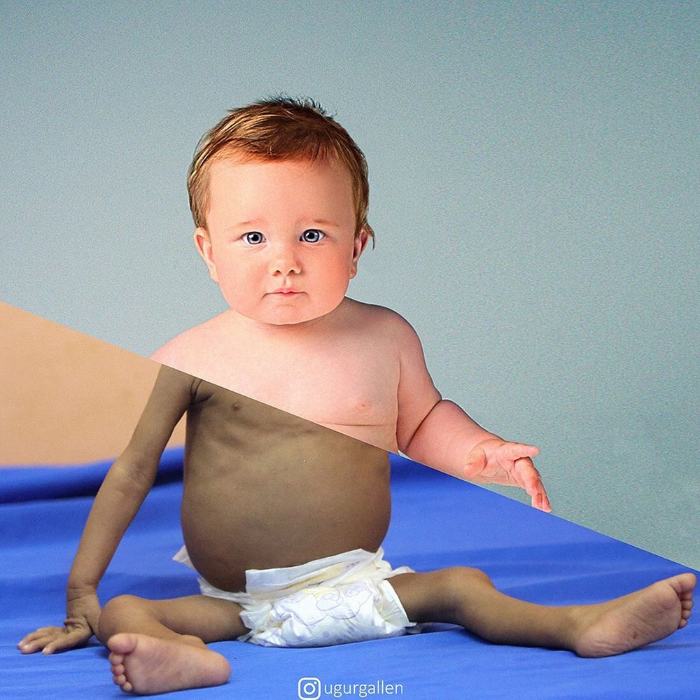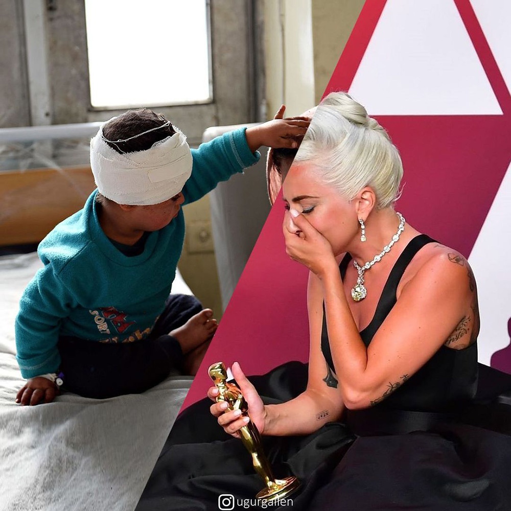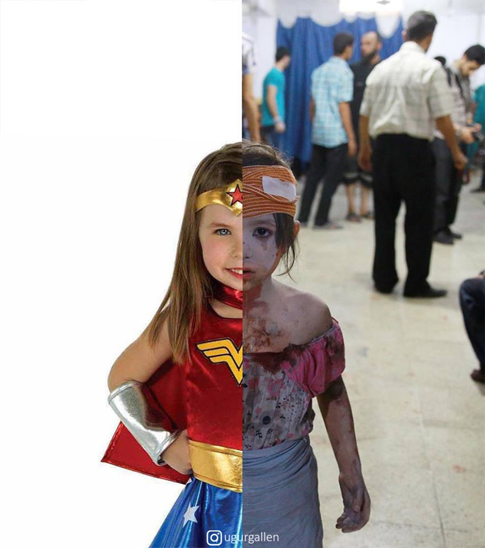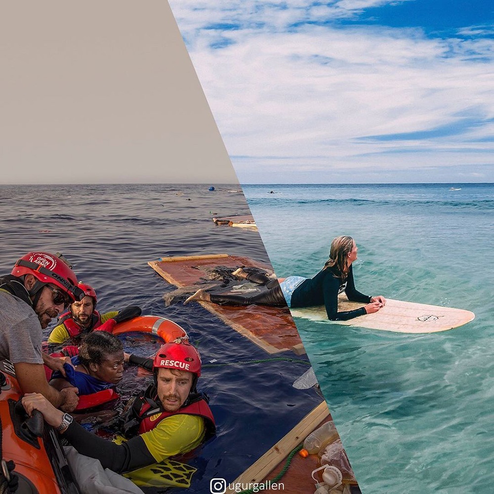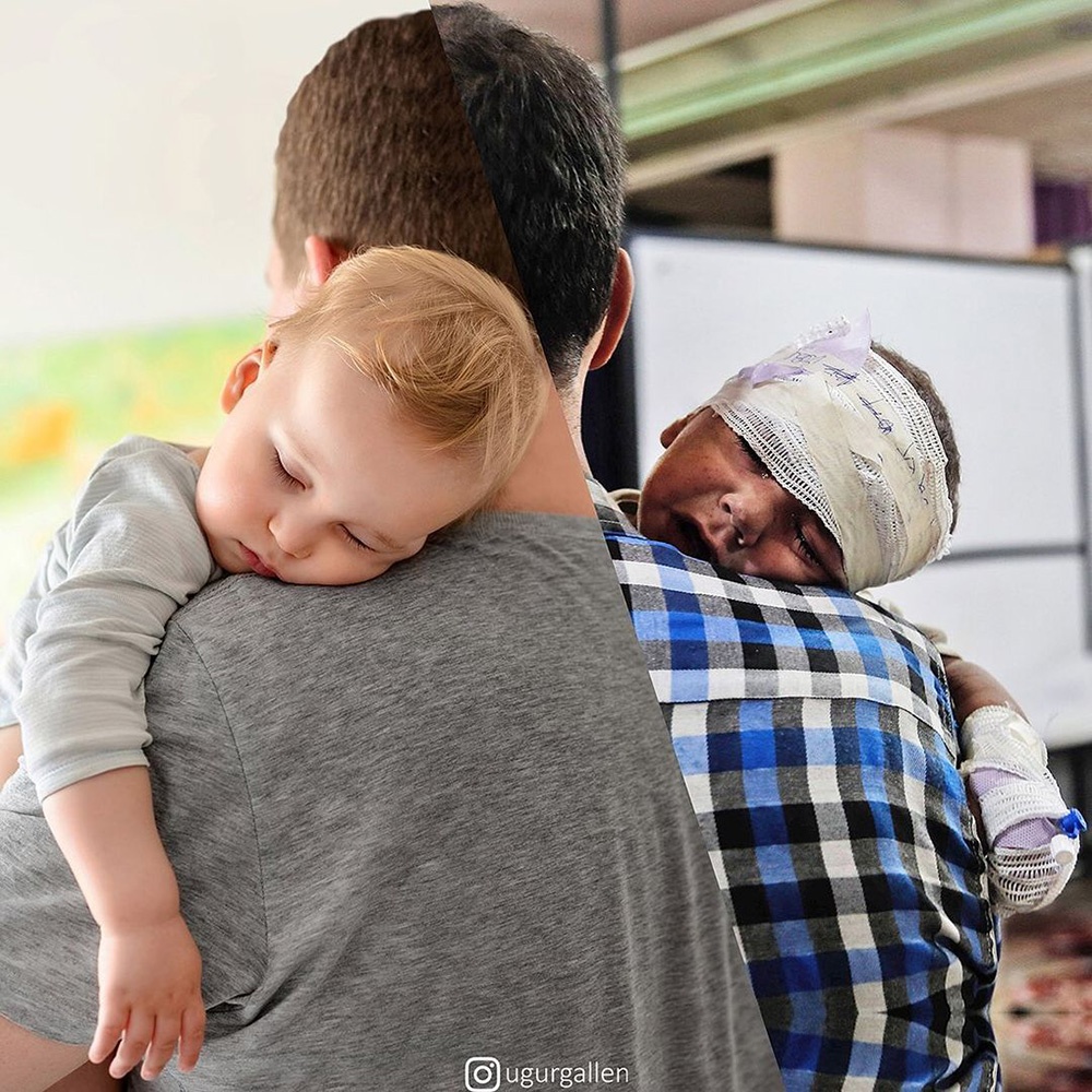Guerra e pace. Ricchezza e povertà. Felicità e tristezza. Vita e morte. Gli opposti si incontrano e si scontrano nelle immagini di Ugur Gallen, generando in chi osserva sentimenti contrastanti. Difficile non riconoscersi in alcune di queste metà e sentirsi un po’ in colpa per l’agiatezza che comporta l’essere nati nel lato cosiddetto civilizzato del mondo.