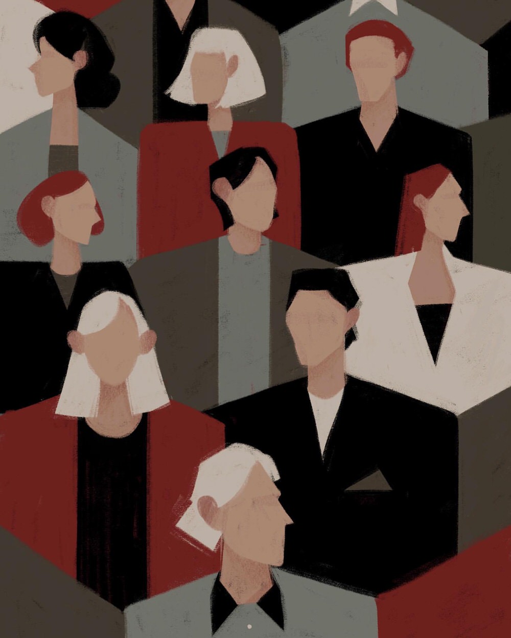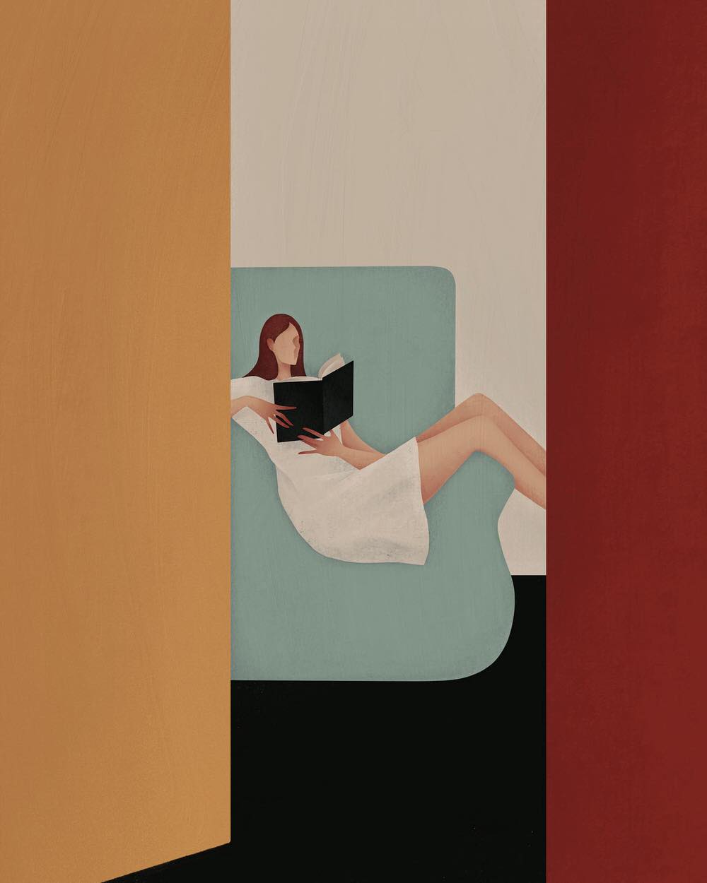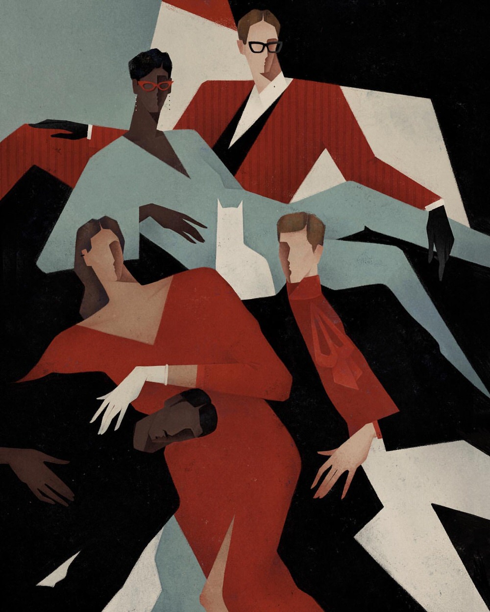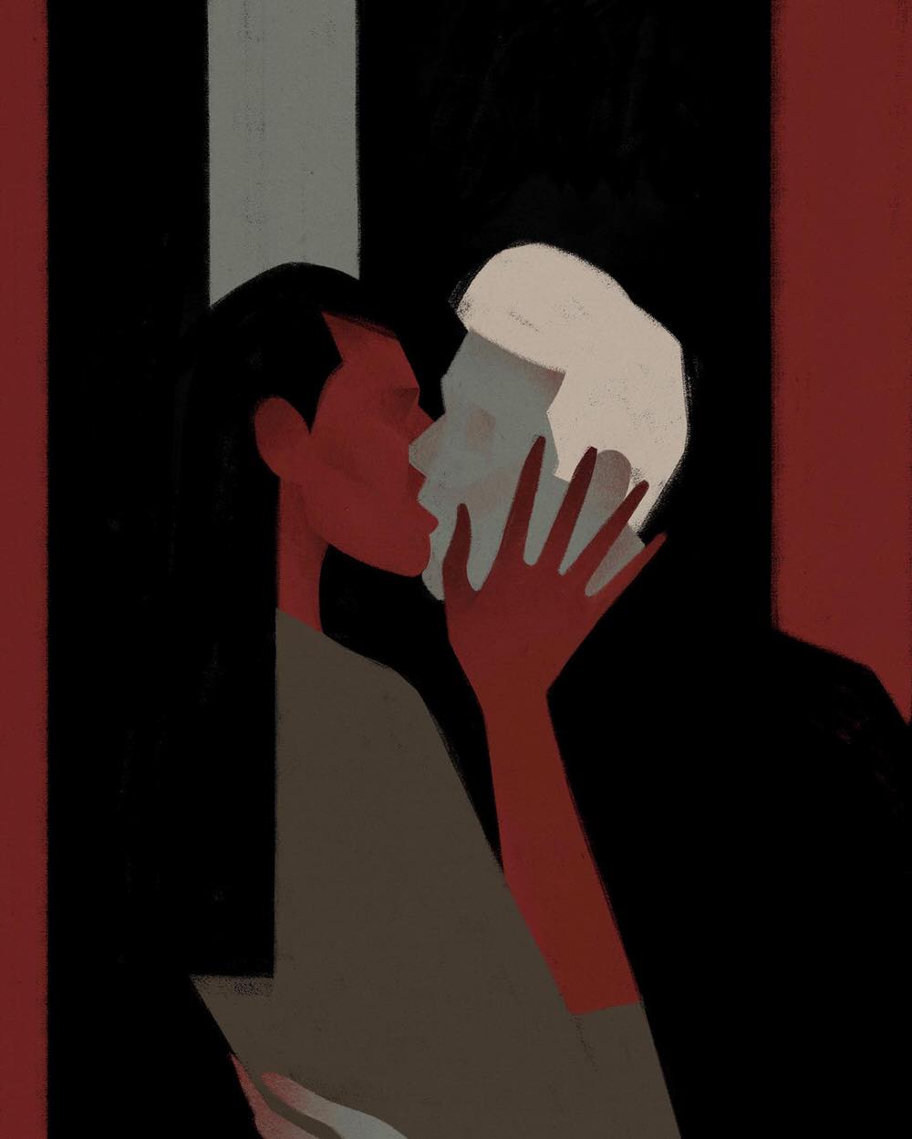 Le pose schive e nette dei suoi personaggi lasciano spazio all’interpretazione e sussurrano storie comuni di delicata compostezza, in perfetta armonia con l’ambiente circostante. L’utilizzo di colori neutri o di tinte pastelli in forte contrasto cromatico aggiungono un ulteriore livello di lettura. A volte è solo un abbraccio o un intrecciarsi di mani a rivelarci il senso della trama, affidata a silhouette scarne e taglienti, che risaltano potenti e catturano lo sguardo con la loro eleganza e i loro movimenti sensuali.