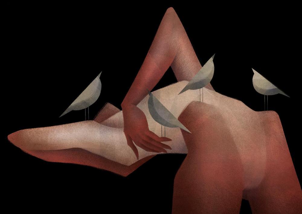 I protagonisti dei lavori di Valeriya Simantovskaya, con i loro lineamenti non sempre definiti, ci catturano per il mistero e l’ambiguità delle storie che raccontano. L’illustratrice esplora il corpo umano in ogni dettaglio, soffermandosi sull’intimità di un incontro, sulla danza delle mani che si uniscono o dei volti che si sfiorano.