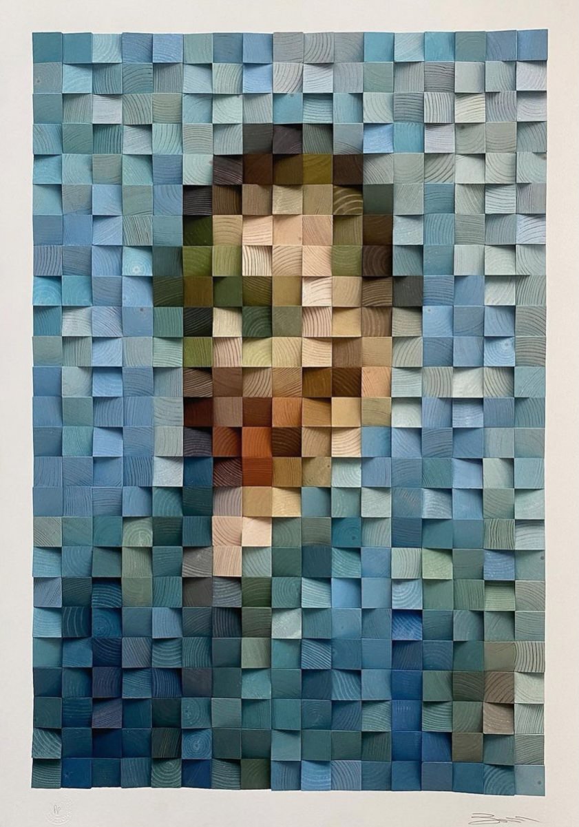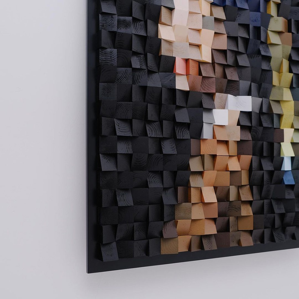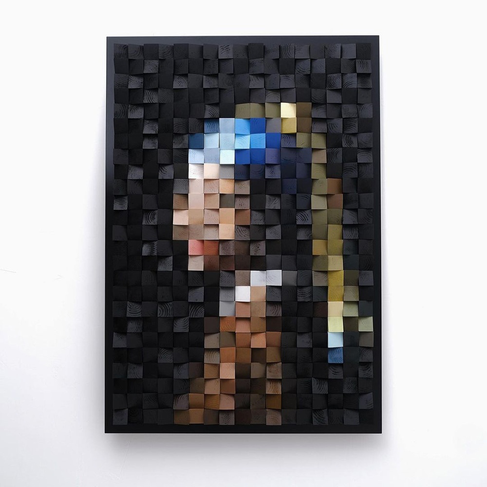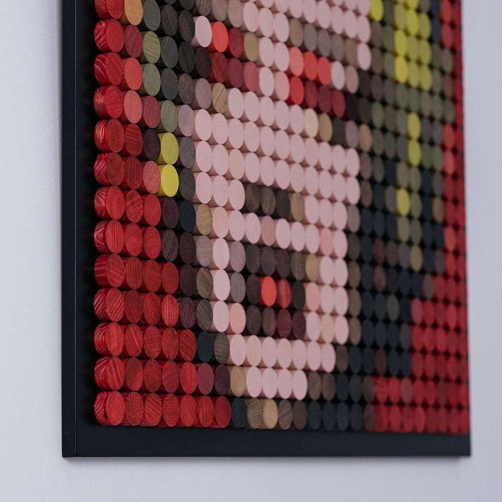 La tecnica si ispira concetto delle immagini digitali a matrice di pixel riportandolo nel mondo reale. Timur Zagirov realizza le sue opere volutamente in “bassa risoluzione”, così che viste da vicino risultino quasi irriconoscibili. Per stupirsi della precisione dei dettagli e dei colori occorre allontanarsi dallo schermo; avvicinandosi è invece possibile apprezzare la cura artigianale di ogni singolo pezzo, la texture del legno e la tridimensionalità delle superfici.