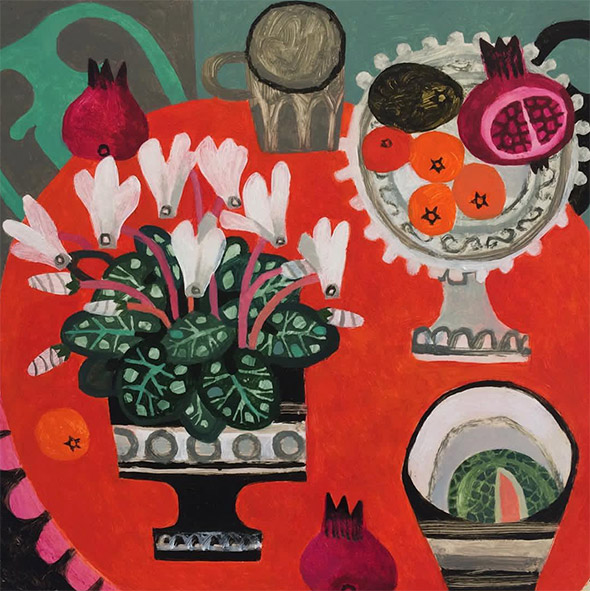 Fiori arrangiati dentro a vasi colorati, canestri di frutta, scorci di interni in cui si vive una vita fatta di piccoli preziosi rituali e animali posati sul balcone. Vanessa reinventa il mondo dipingendolo ad olio, come da tradizione, ma sovvertendone le regole prospettiche, appropriandosi delle forme e delle gradazioni cromatiche e ridefinendo forme e contorni. Il risultato è una quieta e vagamente folle esplosione di colori ed una dichiarazione d’amore alla casa e alla quotidianità.