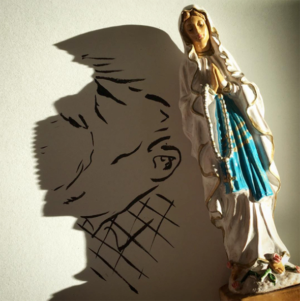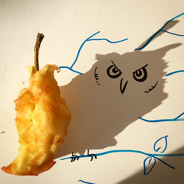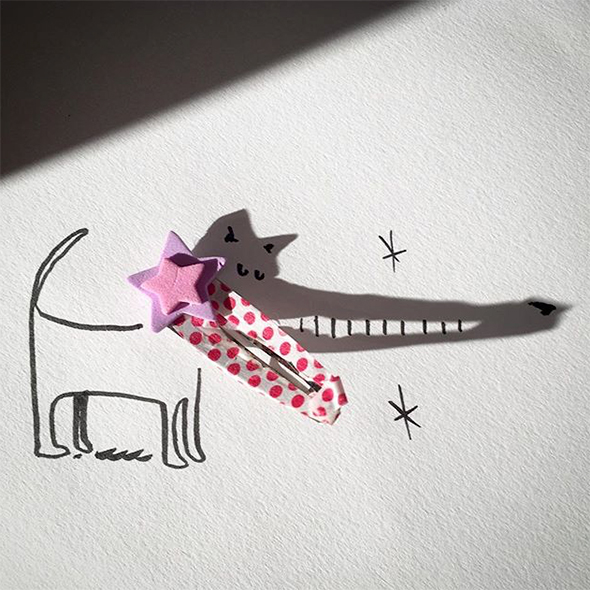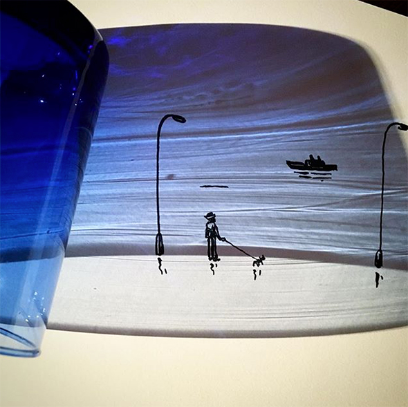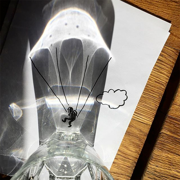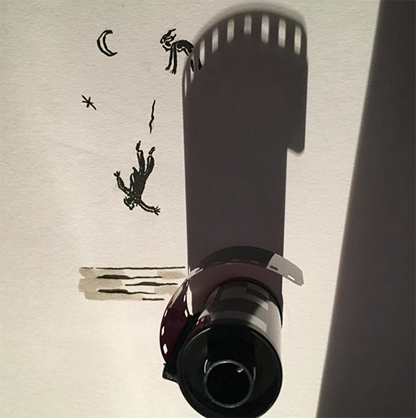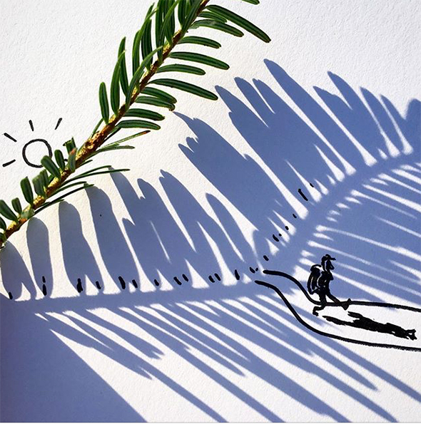 Vincent Bal è un “ombrologo” e questa serissima disciplina porta agli strabilianti risultati che potete ammirare. Vi faccio inoltre cortesemente notare che Vincent lavora a quattro mani col Sole, mica un collega qualunque, ecco perchè il suo stile è così allegro e luminoso. Costruisce le immagini partendo da casuali ombre proiettate sulla carta, che prendono poi le strade più disparate per diventare animali, paesaggi, e colpi di genio.