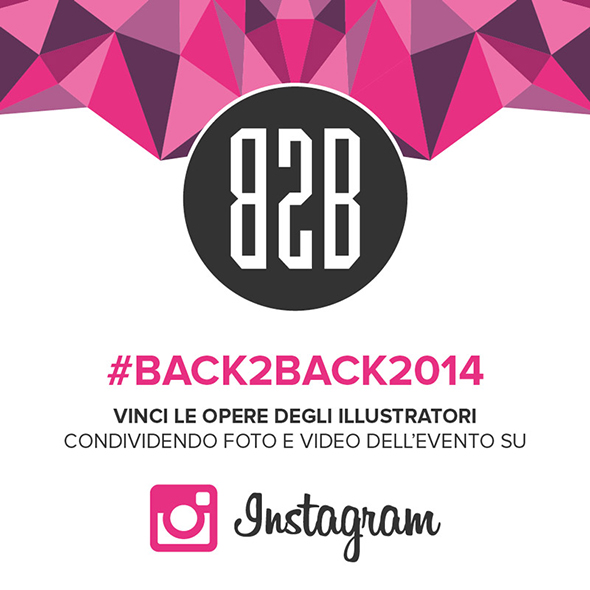 A poche ore da BACK2BACK 2014, di cui ormai sapete tutto, vi sveliamo come fare per portarvi a casa le superfantasmagoriche illustrazioni inedite realizzate da 15 tra gli illustratori italiani più apprezzati al mondo. Si tratta naturalmente di stampe di alta qualità, che potrete aggiudicarvi semplicemente scattando foto o realizzando video durante l’evento e condividendoli su Instagram con il tag #BACK2BACK2014. Nei giorni successivi raccoglieremo tutti i contenuti da voi creati e premieremo gli autori di quelli più originali. Ma non finisce qui! Camaloon, nostro partner ufficiale, ha messo in palio dei gift pack niente male contenenti pins personalizzate da vari artisti, skin per iPhone ed altri gadget che potrete aggiudicarvi con le stesse modalità.