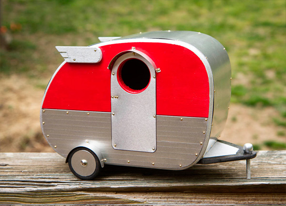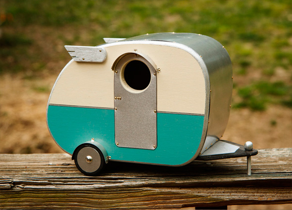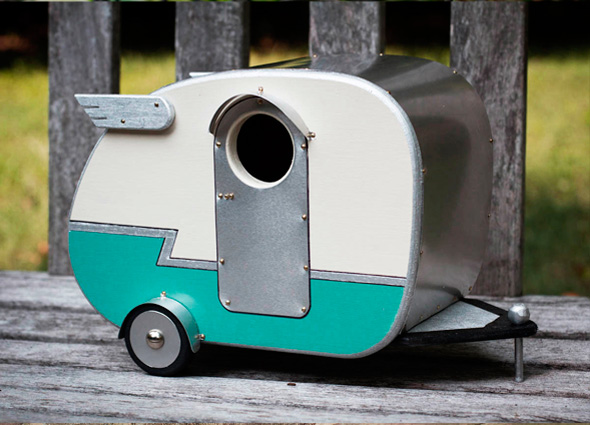 Casette per uccellini ispirate al design delle roulottes ’40 e ’50, pensate per essere fissate agli alberi o appese alle cancellate, e dare ristoro ai nostri piccoli amici migratori. “We’d like to think that inside there are teeny vinyl benchseats and an inbuilt laminex table too, topped with a bowl full of birdseed and a bird-accessible thermos“. Semplicemente adorabili, e le potete trovare qui.