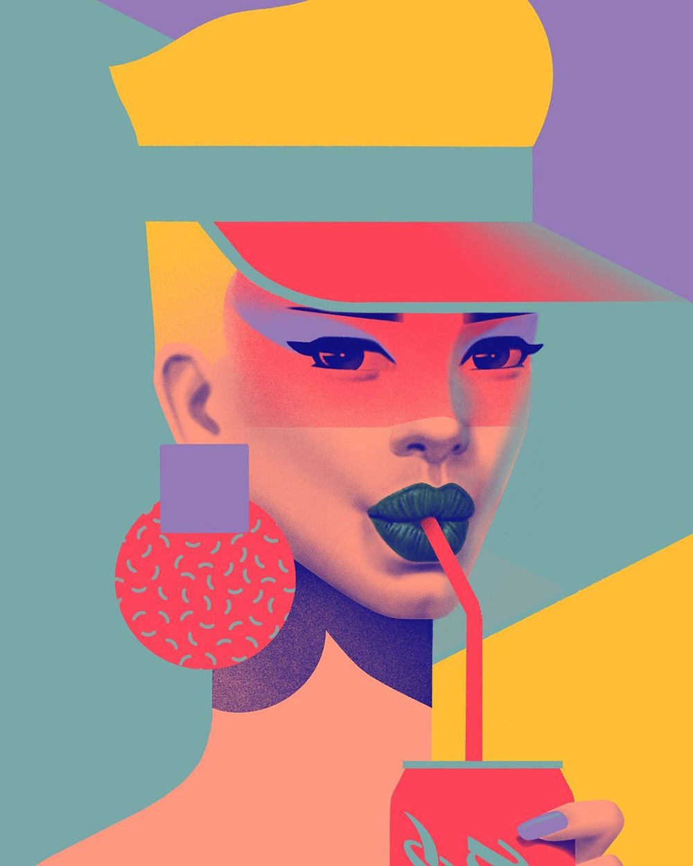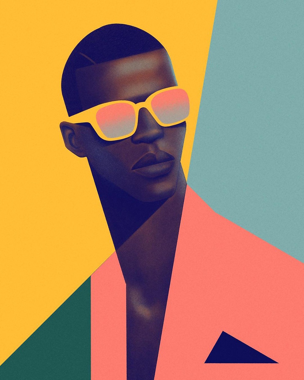 Le composizioni, nelle quali i connotati dei volti si fondono con forme geometriche e linee rette, ricordano gli oggetti audaci che Ettore Sottsass e i membri del collettivo Memphis disegnavano negli anni ’80. Numerose influenze arrivano anche dal mondo della moda, lo si nota dal fatto che i modelli (che peraltro hanno tutti un nome proprio) indossano capi e accessori firmati e sfoggiano acconciature da passerella. Di recente l’illustratore ha iniziato a interessarsi anche al mondo della musica con due ritratti dedicati a Kanye West e Pharrell Williams.