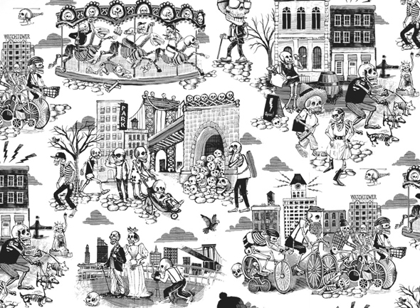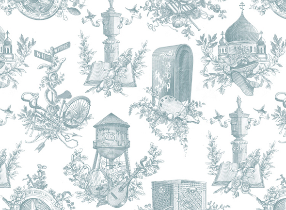 Dire che Dan Funderburgh è un designer di tappezzerie suona riduttivo. La sua produzione è infatti molto varia e va dal graphic design alla serigrafia. Anche se è nel campo del wallpaper design che l’artista esprime il massimo della propria creatività. Le sue texture, barocche ed elaboratissime, hanno suscitato l’interesse di grandi aziende (tra cui Moleskine, Microsoft, Nike) che hanno voluto affidare a Dan la realizzazione di packaging, decorazioni, istallazioni e quant’altro…