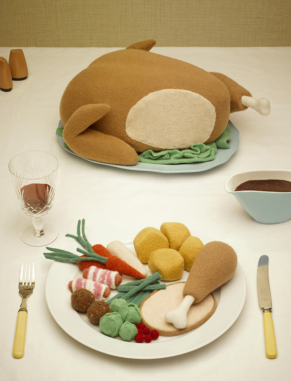 Portate all’apparenza appetitose ma che potrebbero lasciarvi, per così dire, la lingua felpata. Freddure a parte, il simpatico progetto che vedete nasce dalla collaborazione tra l’artista/modellista Jessica Dance e il fotografo David Sykes. “Comfort Food” presenta una serie di piatti tipici tra cui la colazione all’inglese, il pranzo classico da fast food composto da hamburger/hot dog e patatine fritte, pollo arrosto con verdure e così via. Tutti i cibi, come già avrete capito, sono fatti interamente in lana.