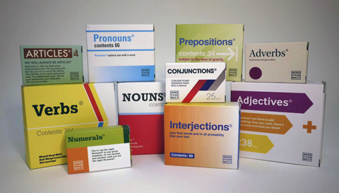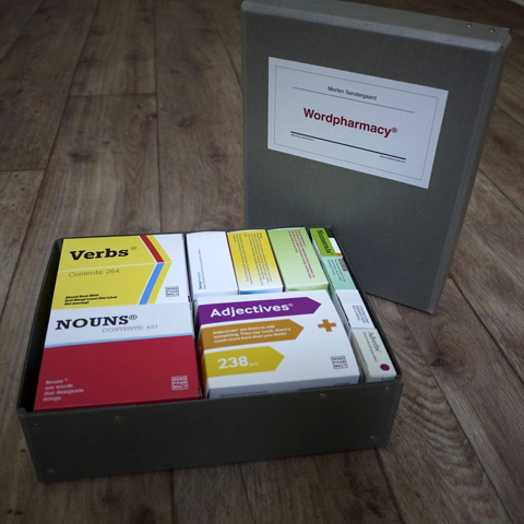 Il linguaggio è una strumento duttile, in continua evoluzione, siamo tutti d’accordo. Ogni giorno però nella velocità di sms e social networks lo facciamo a pezzi, nel migliore dei casi consapevolmente. Wordpharmacy è “a concrete poetical work, which playfully equates the structure of language with pharmaceutical products”, ovvero strutture del linguaggio come pillole, che interagiscono col nostro corpo curandolo là dove ha bisogno. Congiuntivi, preposizioni, avverbi, sinonimi? Prendete e mangiatene tutti.