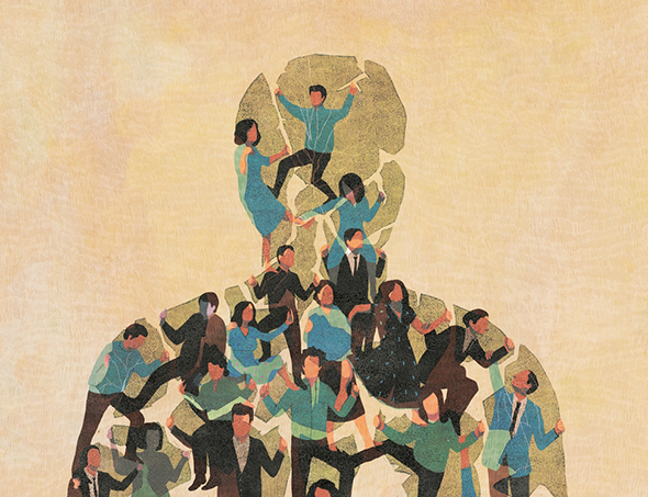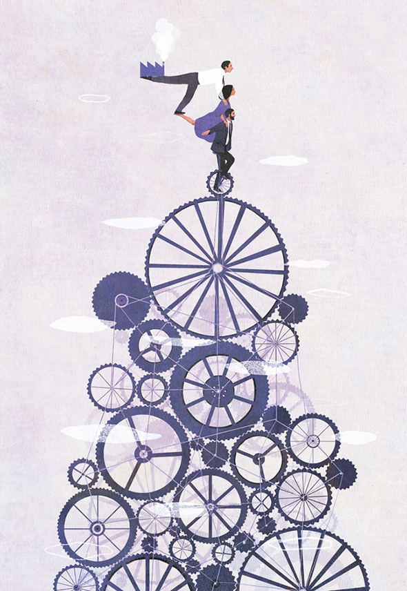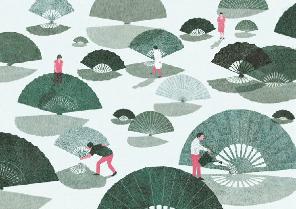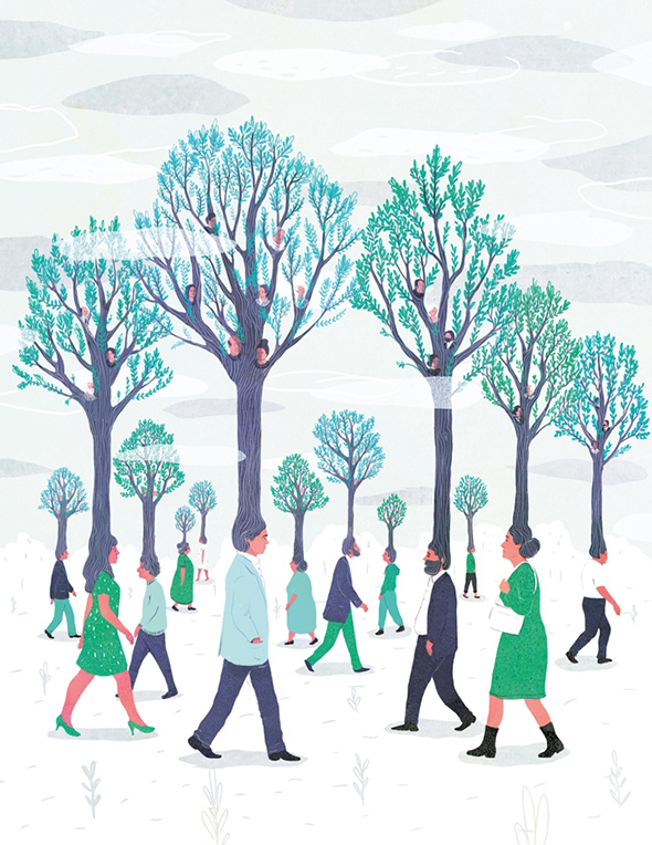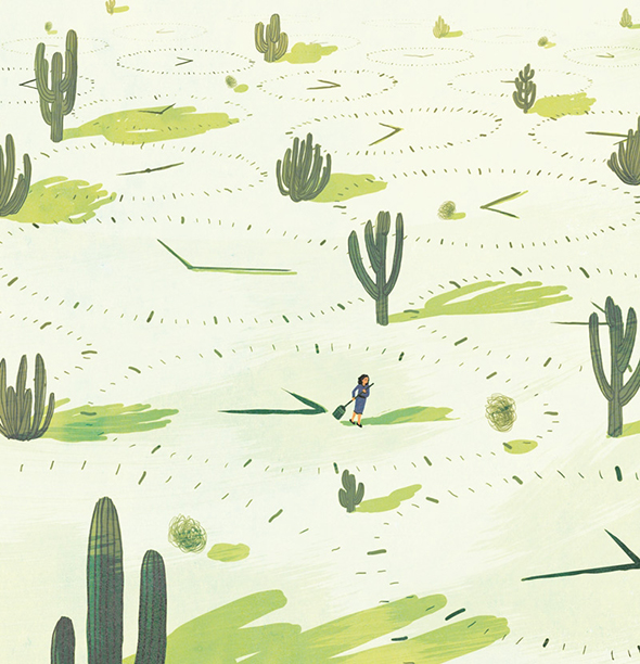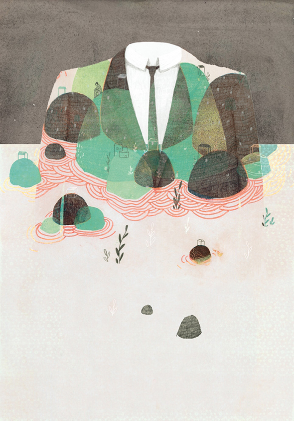Studia scenografia a Strasburgo, lavora con le compagnie di teatro e danza e poi scopre l’illustrazione per ragazzi. Oggi, di stanza a Parigi, lavora per l’editoria e le testate internazionali, anche italiane. Classe 1979, Yasmine Gateau ha uno stile realistico ma essenziale, sintetico, anche se, ad un più attento esame, rivela una “grana” molto elaborata, una tessitura che rende le sue illustrazioni quasi pittoriche. Una palette di colori sempre equilibrata, quasi mai squillante. Molti dei suoi lavori hanno un’impostazione concettuale, ma non rinunciano al piacere tattile della pennellata fitta, che rende più viva ed emozionale la composizione.