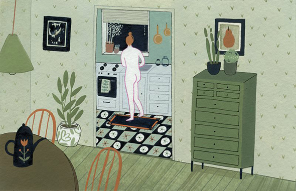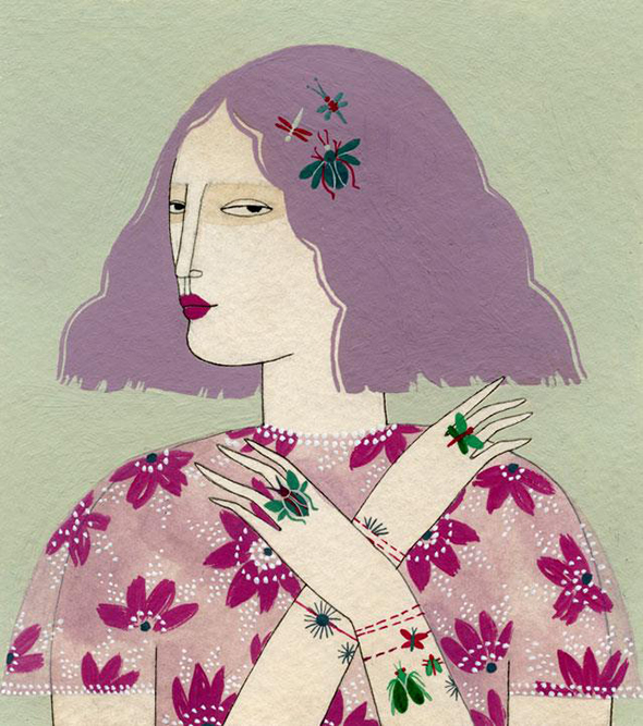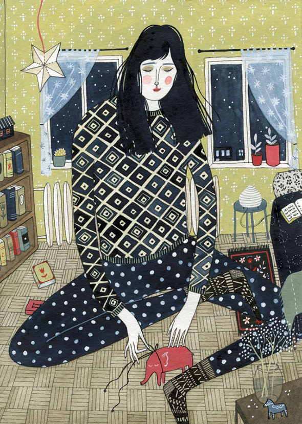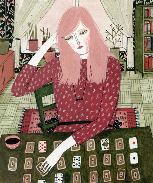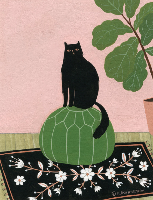 Nativa di San Pietroburgo ma cresciuta ed educata in una varietà di città statunitensi, Yelena Bryksenkova porta nella sua arte il fascino antico delle fiabe russe, l’attenzione per i piccoli dettagli, e un malinconico amore per la quotidianità domestica.Il tutto è armonizzato in una rappresentazione splendidamente naïf, fatta di gatti accarezzati su pavimenti in legno la cui prospettiva segue regole dolcemente personali, di ragazze tristi immerse nella lettura o in un solitario gioco di carte, di meravigliosi abiti floreali e di tinte calde come tazze di té.