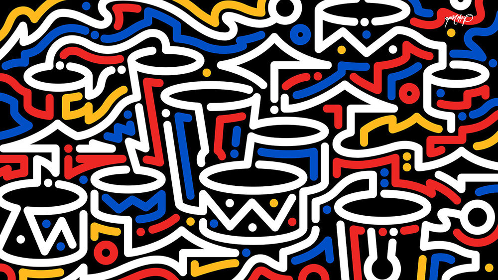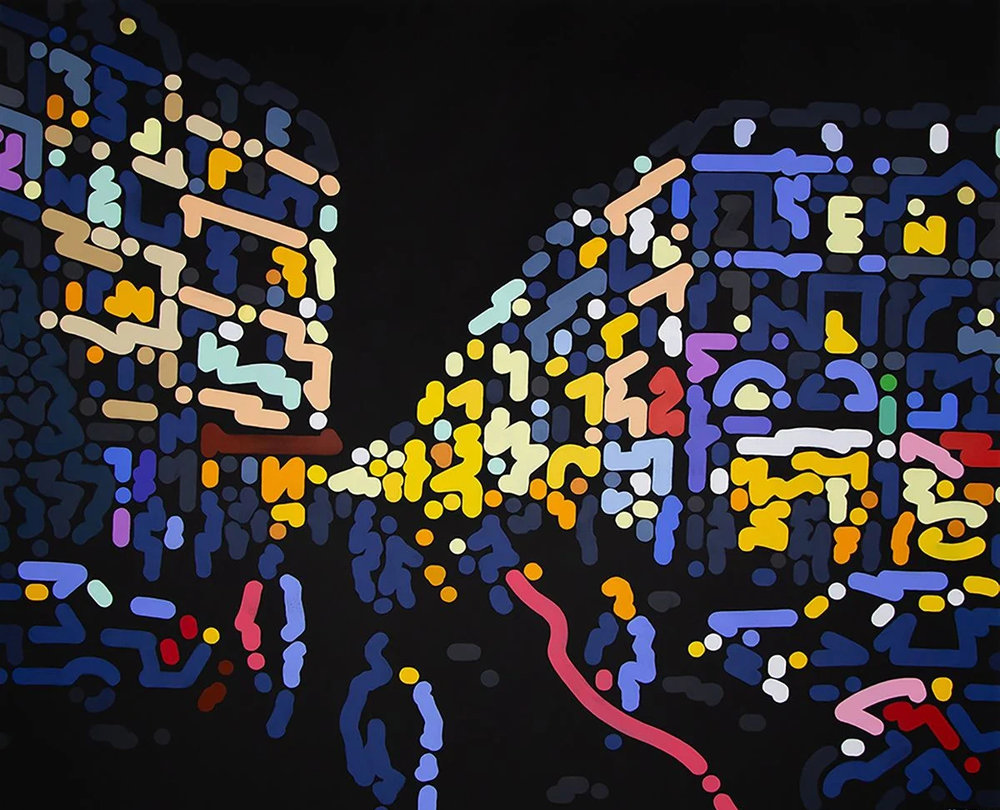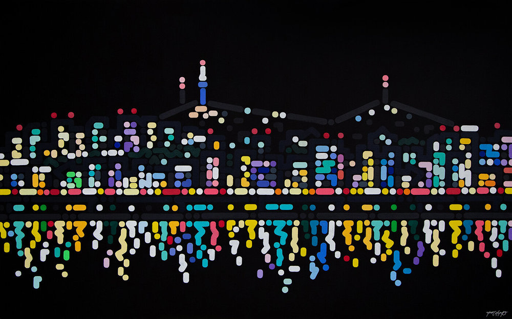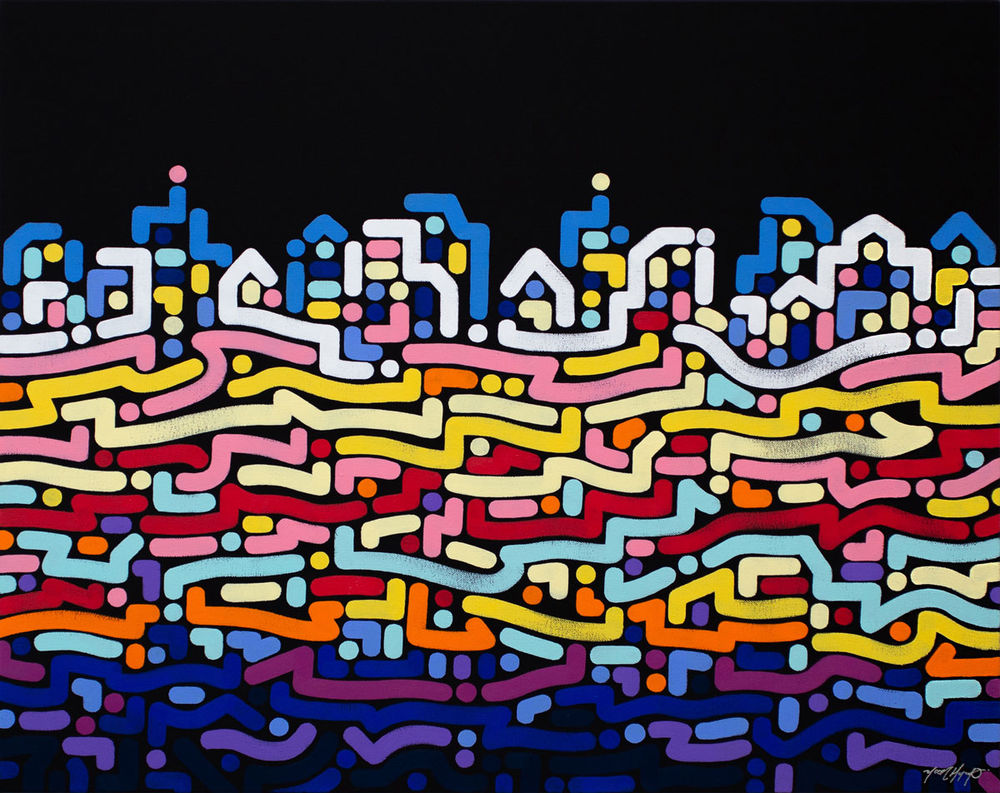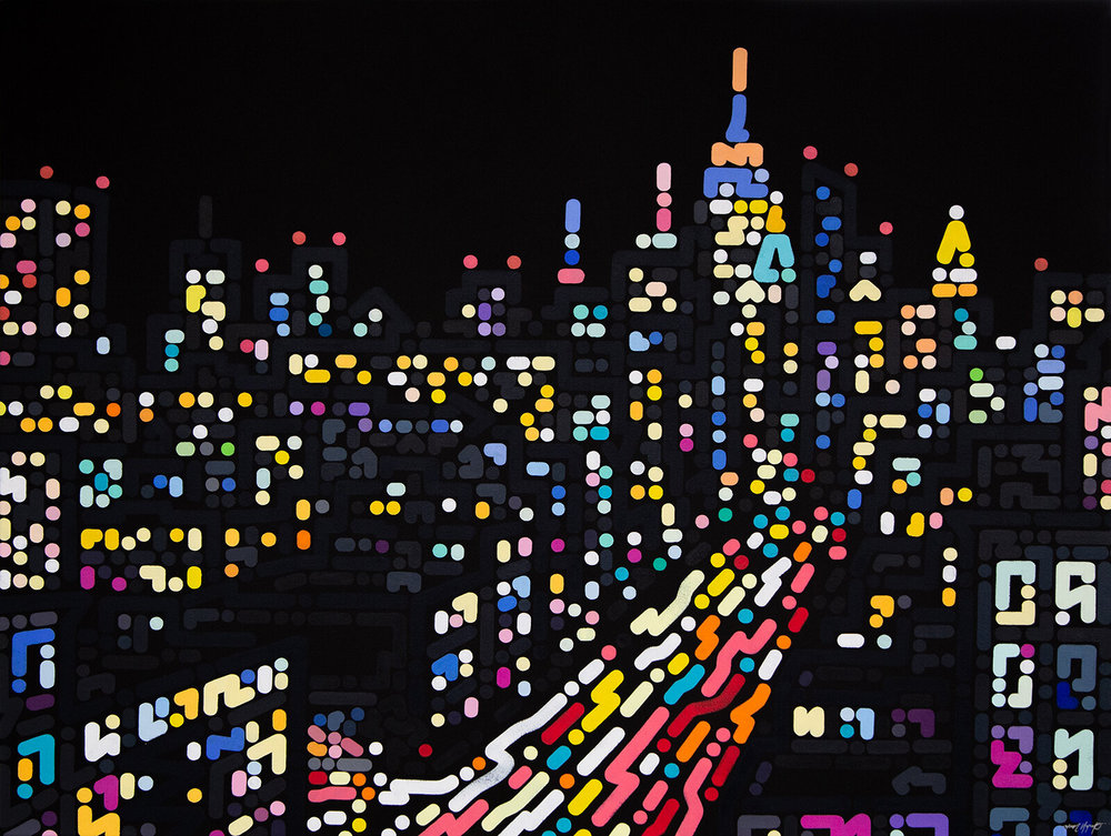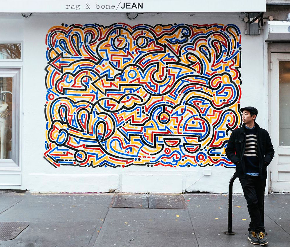 Nato in Corea, Yoon Hyup ora vive e lavora a Brooklyn. Ha iniziato la sua carriera di artista nei primi anni 2000, dipingendo muri e partecipando a live painting. Il suo stile attuale, fatto di punti e trattini colorati, nasce proprio durante una di queste sessioni, ispirato dal movimento delle luci e dal ritmo della musica.